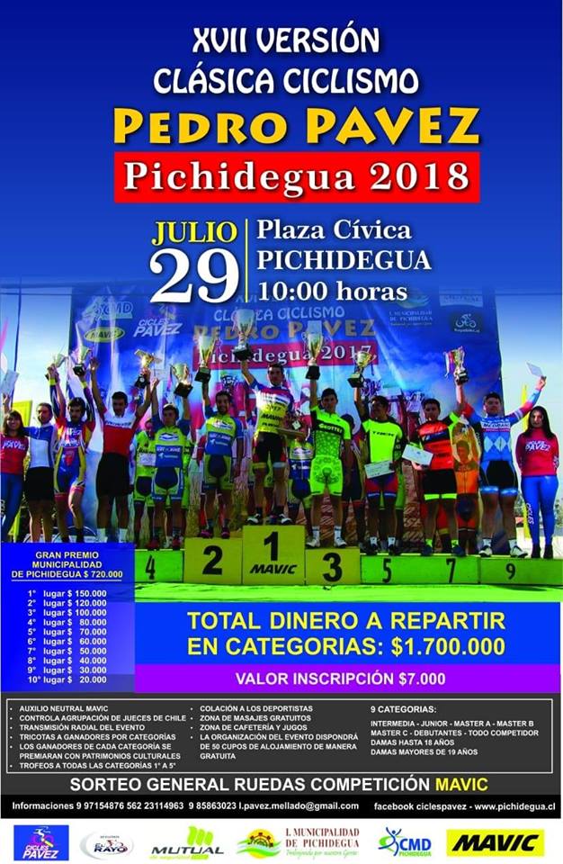 Read moreCicles Pavez en conjunto con la Ilustre Municipalidad de Pichidegua y su Corporación de Deportes. Invitan a todos los...