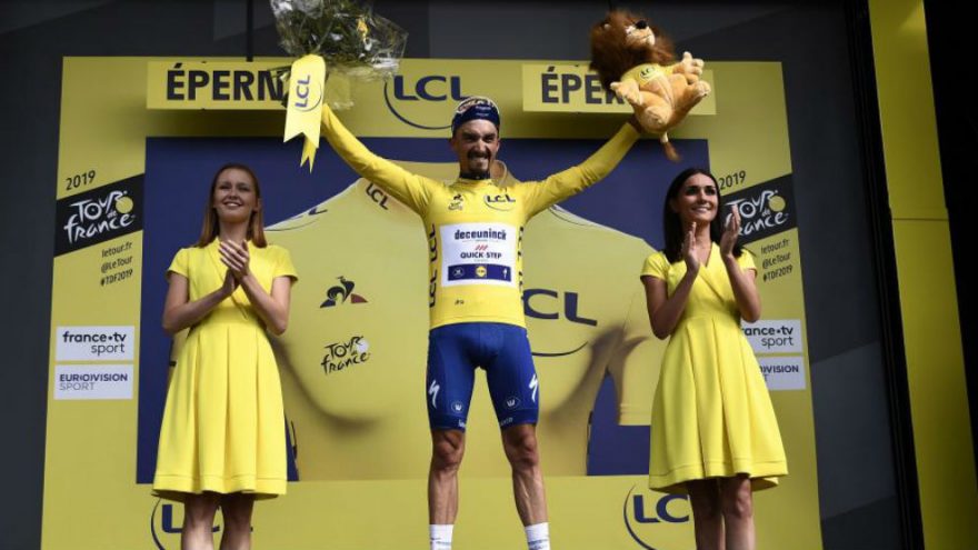 El francés Julien Alaphilippe se impuso en la tercera etapa del Tour de Francia con final en Épernay y consiguió así...